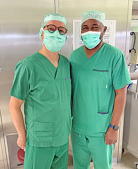 Dr. Mabedi, der aus Malawis Hauptstadt Lilongwe stammt, konnte bei einer Reihe von Operationen mit Schwerpunkt Tumorchirurgie und Endourologie am KKH hospitieren und tauschte sich mit unseren Kolleginnen und Kollegen über die Urologie in Afrika und Deutschland aus. Für Dr. Mabedi ging es gestern weiter nach Hamburg zum Europäischen Kongress für Tropenmedizin und internationale Gesundheit.