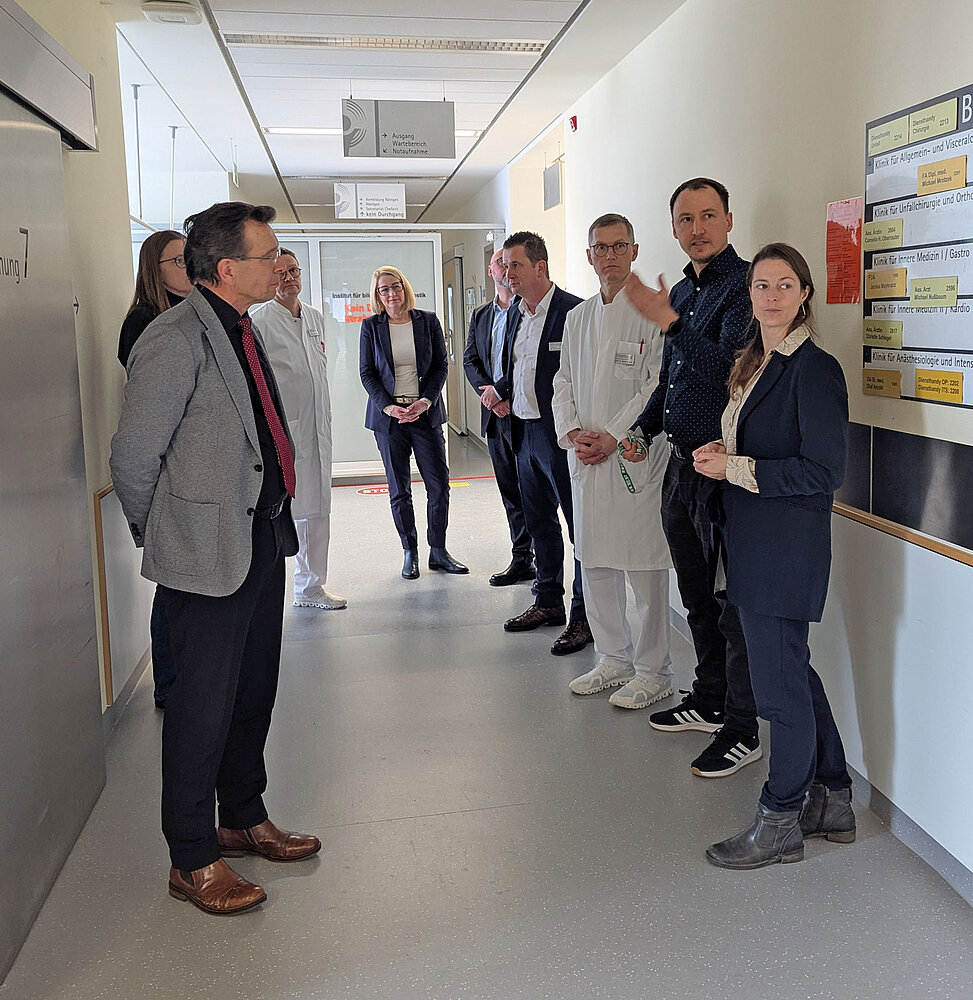 Im Anschluss gab es einen intensiven Dialog mit Mitgliedern der Hausleitungen des Katholischen Krankenhauses “St. Johann Nepomuk" sowie des “St. Elisabeth” Krankenhauses in Lengenfeld unterm Stein, insbesondere zu wichtigen Themen wie beispielsweise Altersmedizin, Geburtshilfe und Robotik in der Medizin. Besonderes Augenmerk lag auf der Diskussion über die Krankenhausreform, Leistungsgruppen und der politischen Weichenstellung, die für die Weiterentwicklung der Gesundheitsversorgung von großer Bedeutung sind. Der Austausch war sehr konstruktiv und bietet wertvolle Impulse für die zukünftige Gestaltung der Krankenhauslandschaft. Ein kurzer Rundgang durch das Haus sowie ein Gespräch mit der Mitarbeitervertretung rundeten den Besuch ab.